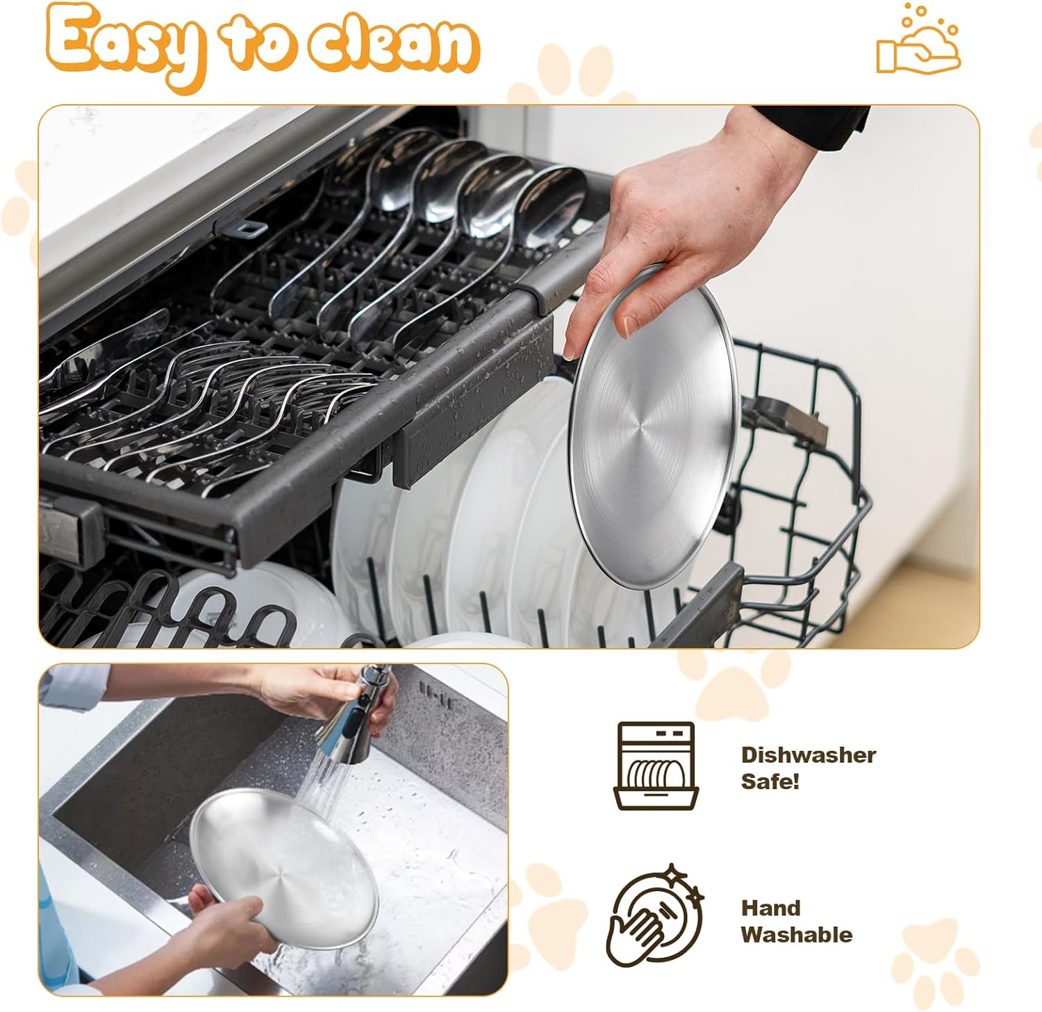 Wide Applications: Our stainless cat feeding bowls are suitable for water, different dry food and wet food, whether it is filled with crispy dry food, freshly canned food, or nutritious puree, meat block these cat food dishes is a good choice. They can maintain the crispy texture, smooth surface, running water to restore the brightness of the wash, does not leave residual odors, suitable for home, traveling, boarding with no fear of falling broken