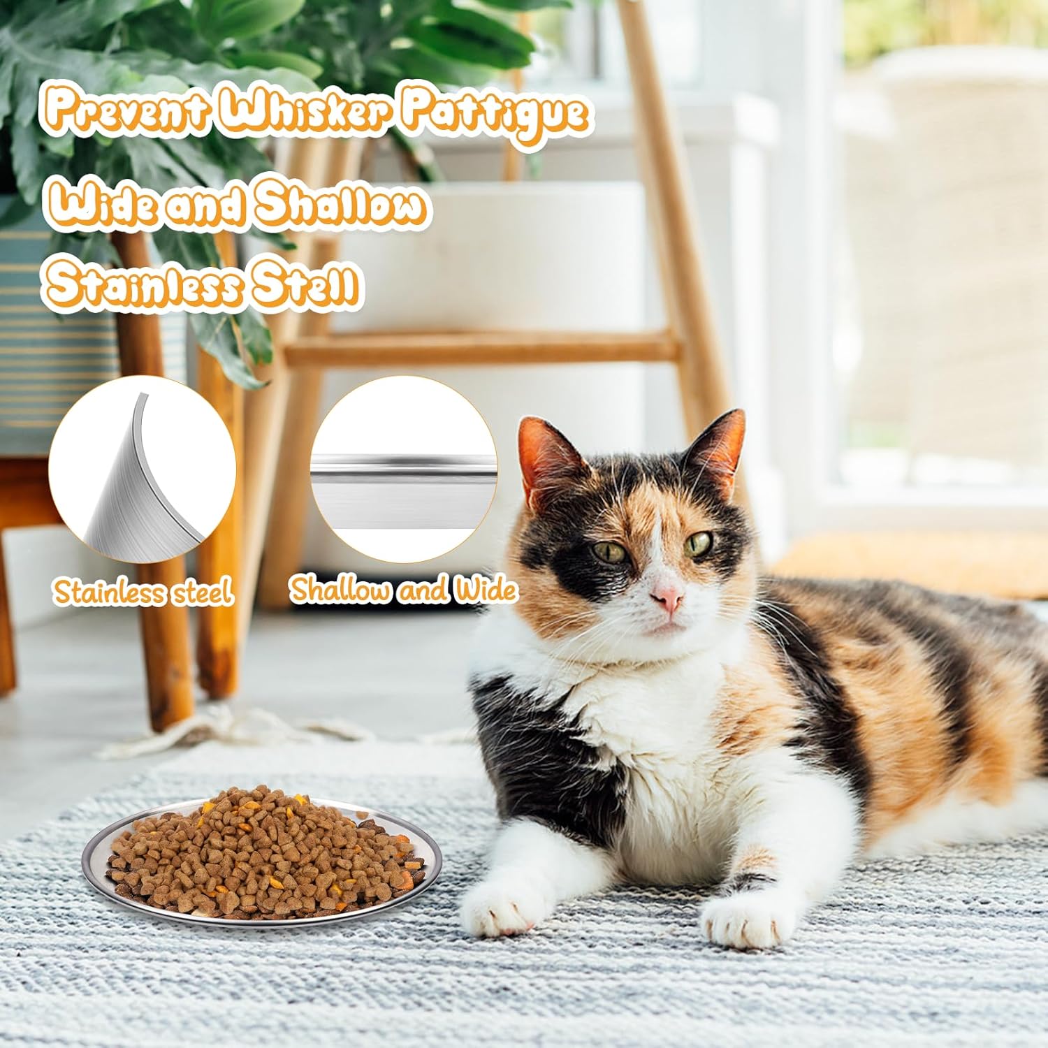 Shallow Bowl Design: The stainless steel cat bowls are wide, flat and low enough to prevent your cat’s whiskers from touching the edge of the bowl while eating, helping to relieve whisker fatigue and keep the face clean. It allows cats to eat at a more comfortable and natural angle, helps to relieve neck pressure and promotes better digestion