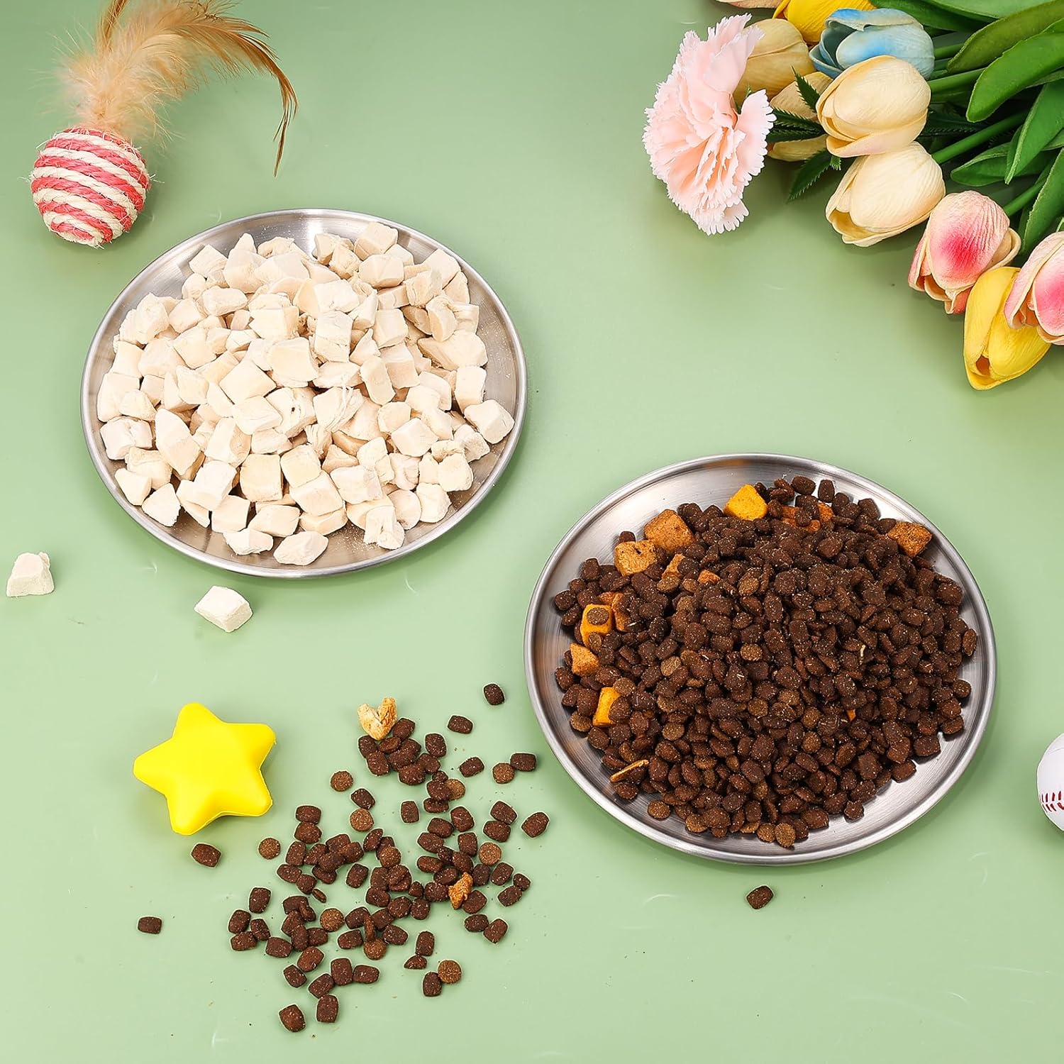 Reliable Stainless Steel: Our shallow cat dishes are made of food-grade 304 stainless steel, which can effectively resist corrosion by water, food residues and detergents. They are not easy to rust or break, not easy to deteriorate in the long term, long-lasting, no-lead, harmless, smooth and will not emit odor, which can make pets eat more happily