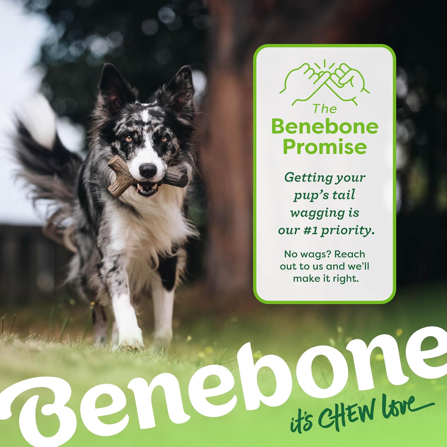 At Benebone, we started with the premise that dogs experience scent and flavor in a way we can’t even grasp. So we ditched the neon colors and loud squeaks. Inspired by a dog’s powerful sense of smell, we developed a long-lasting durable chew that’s jam-packed with real flavor. Once your dog takes a bite of our USA-made chews, he’ll be hooked.