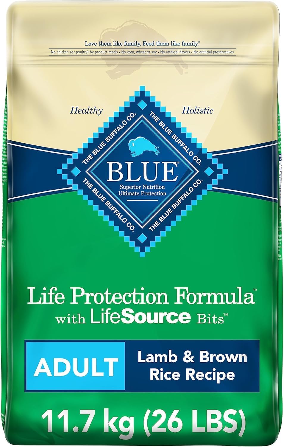 Blue Buffalo Life Protection Formula Adult Dog Food – Natural Dry Dog Food for Adult Dogs – Lamb and Brown Rice 11.7 Kg Bag