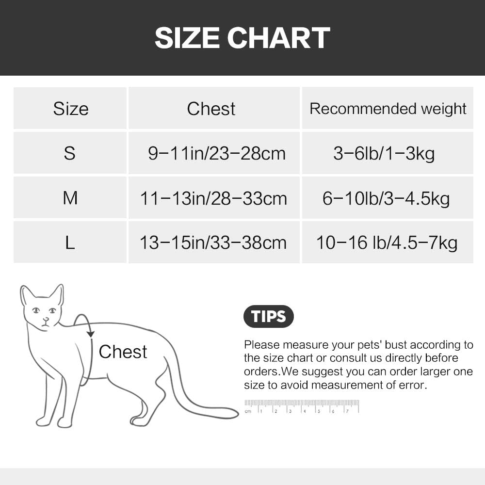 2.360° wrap-around chest back: the pressure on the chest is even and safe to avoid pulling and suffocation, and to protect the cat from the fragile trachea and throat.