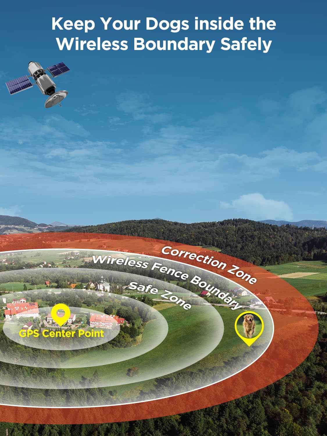 Precise GPS Boundary Positioning: Powered by a cutting-edge U-BLOX chip, the DOGOITM GPS Wireless Dog Fence takes boundary control to the next level—delivering pinpoint accuracy and top-tier anti-interference performance you can trust. It connects to multiple satellites in real time to create a seamless, invisible boundary, letting your dog run, explore, and play to their heart’s content—all while staying safely within your desired area.