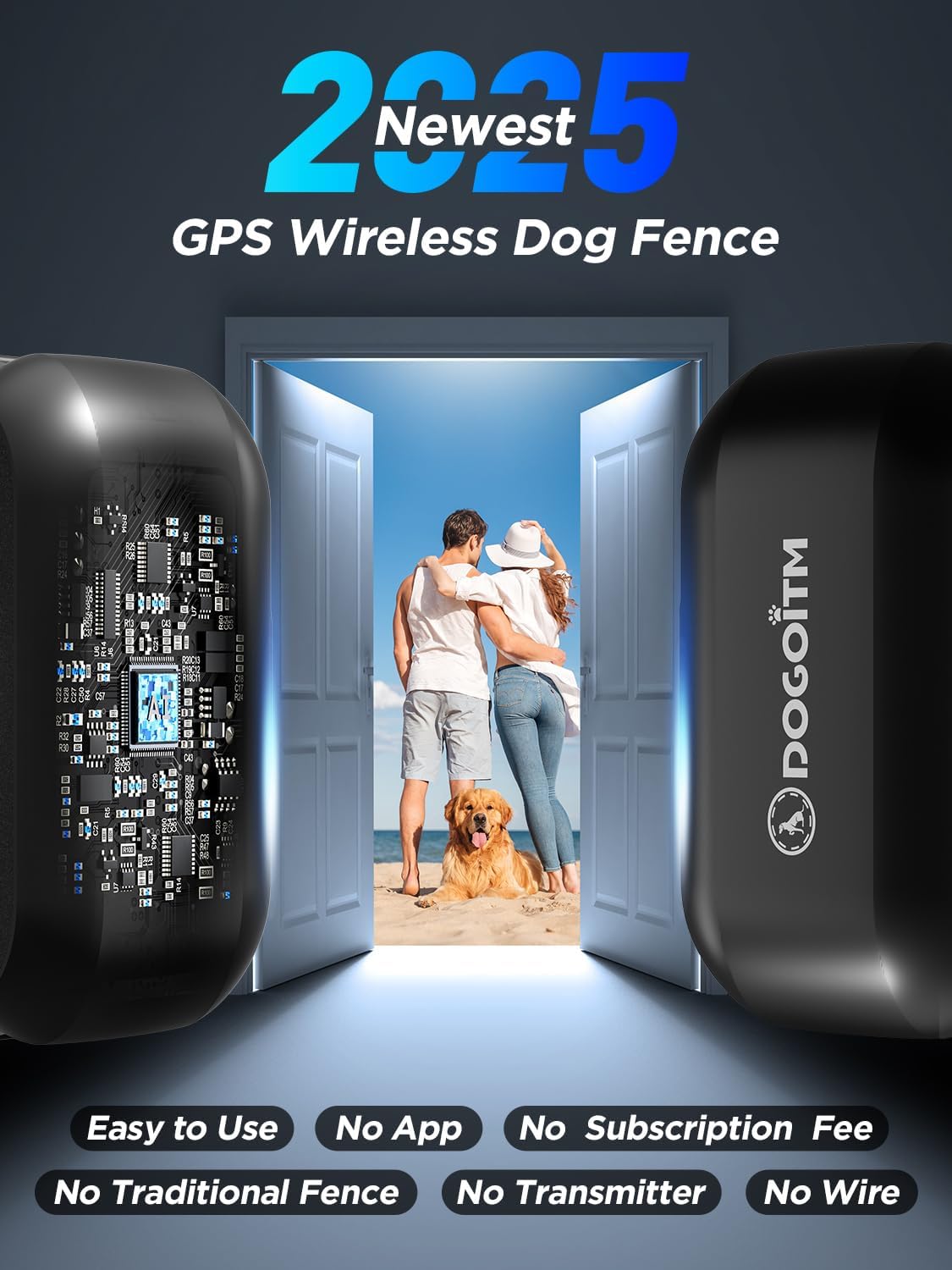 DOGOITM Wireless Dog Fence for 2 Dogs, GPS Wireless Dog Collar with 3 Correction Modes, Pet Containment System with AI Smart Signal, Waterproof Electric Dog Fence Collar for Outdoor Use