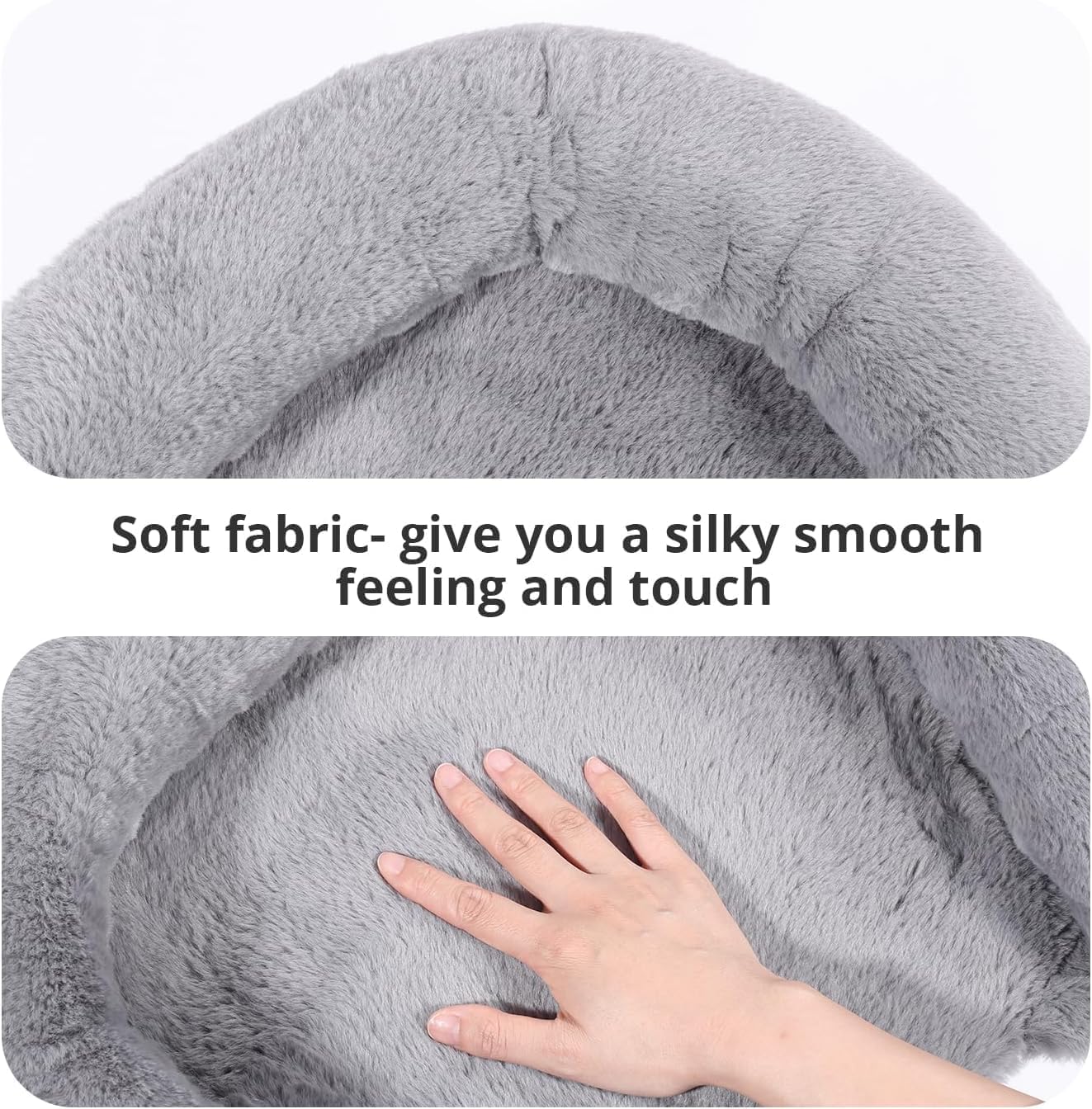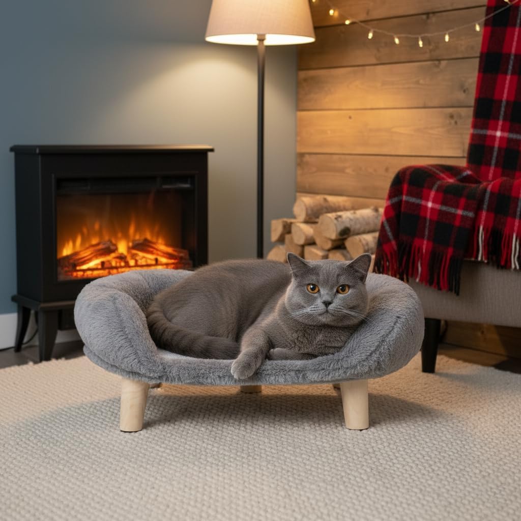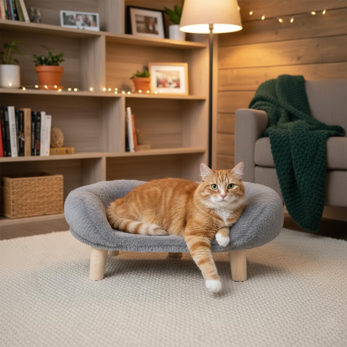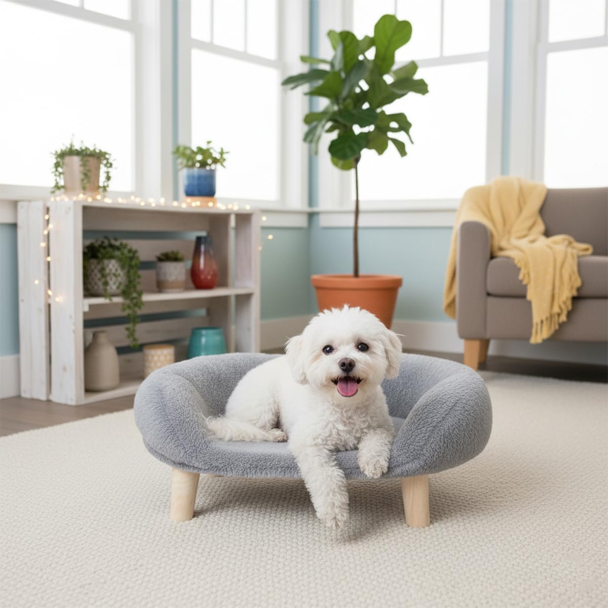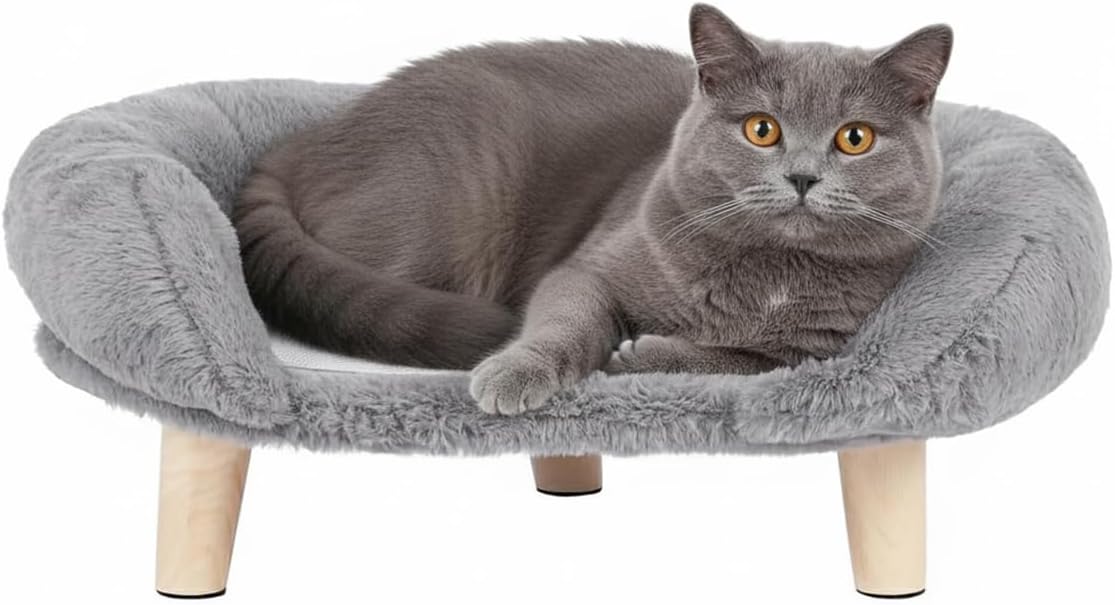 DREAMSOULE Elevated Pet Bed,Cat Dog Stool Bed with Sturdy Wood Legs Pet Chair, Plush Pet Bed, Round Warm Kennel Soft Puppy Sofa for Small Dog Kitten,Relief and Improved Sleep (Light Gray, Large)