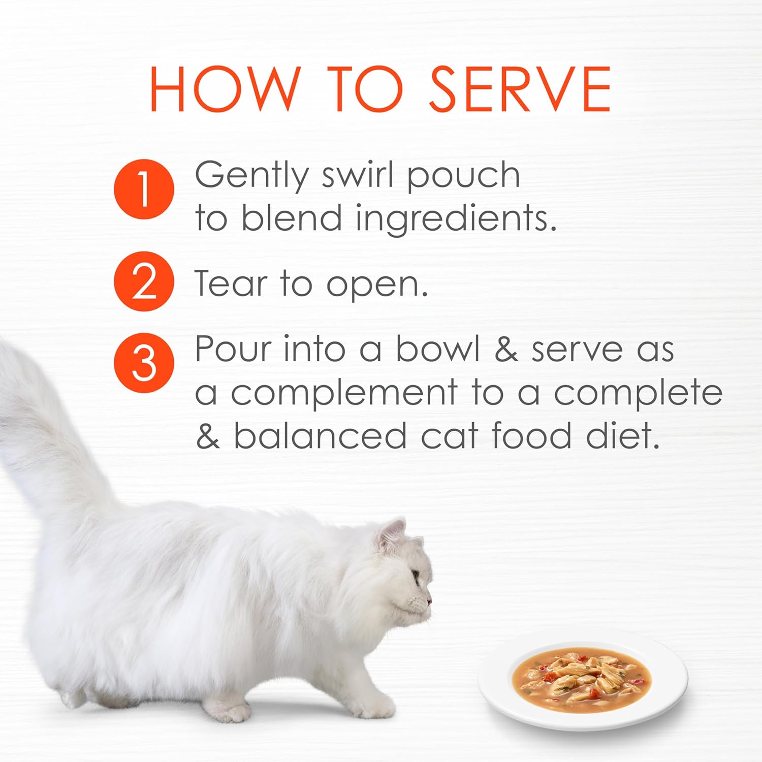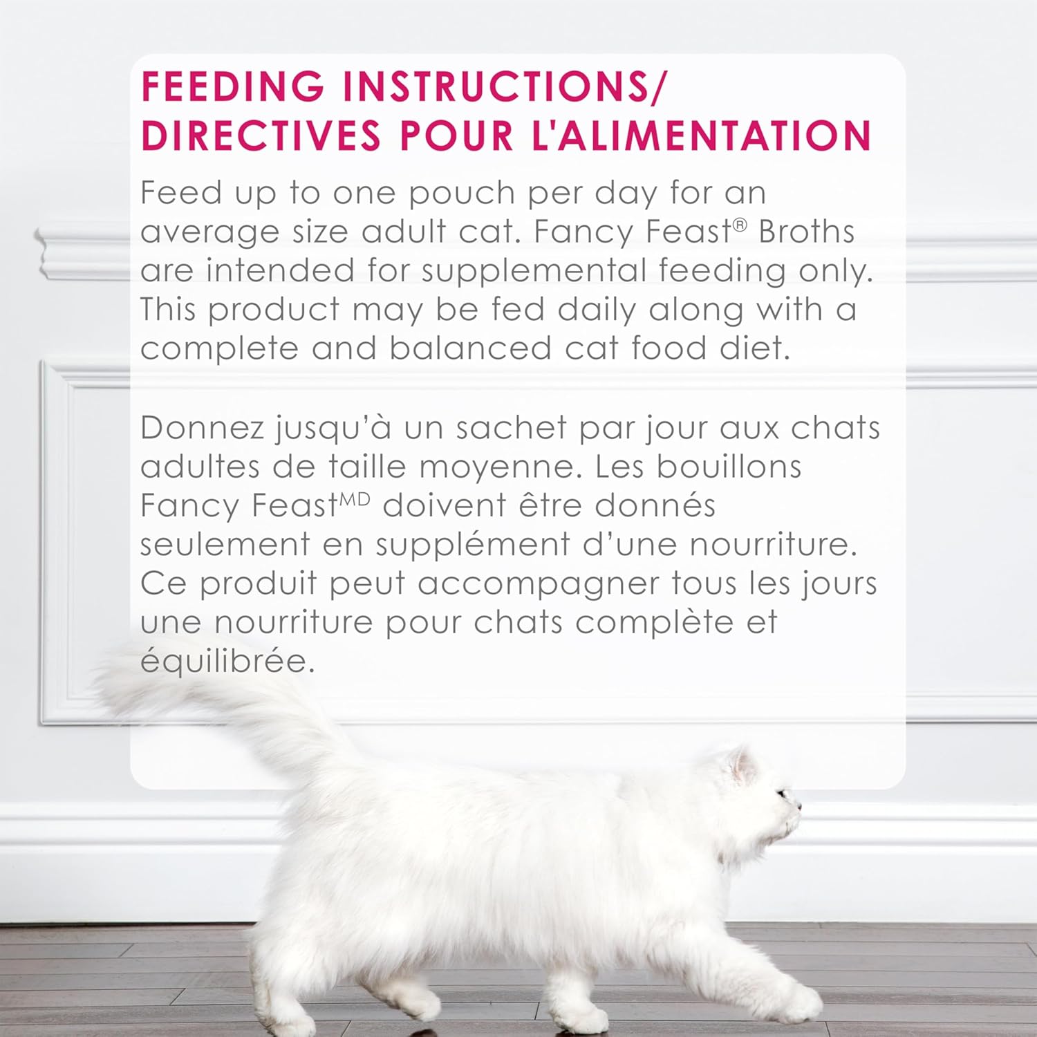 Real, recognizable ingredients are at the heart of every Fancy Feast Broths recipe. Each perfectly portioned, ready to pour pouch includes a variety of lickable, lappable, tastes and textures in a decadent broth cats are sure to love.