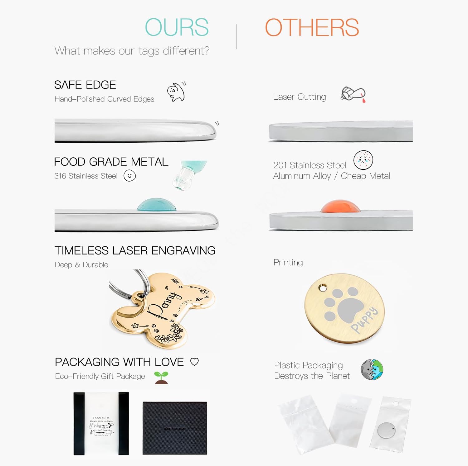 Our pet tags are both beautiful and practical. They can not only help pets prevent getting lost, but also have multiple uses.