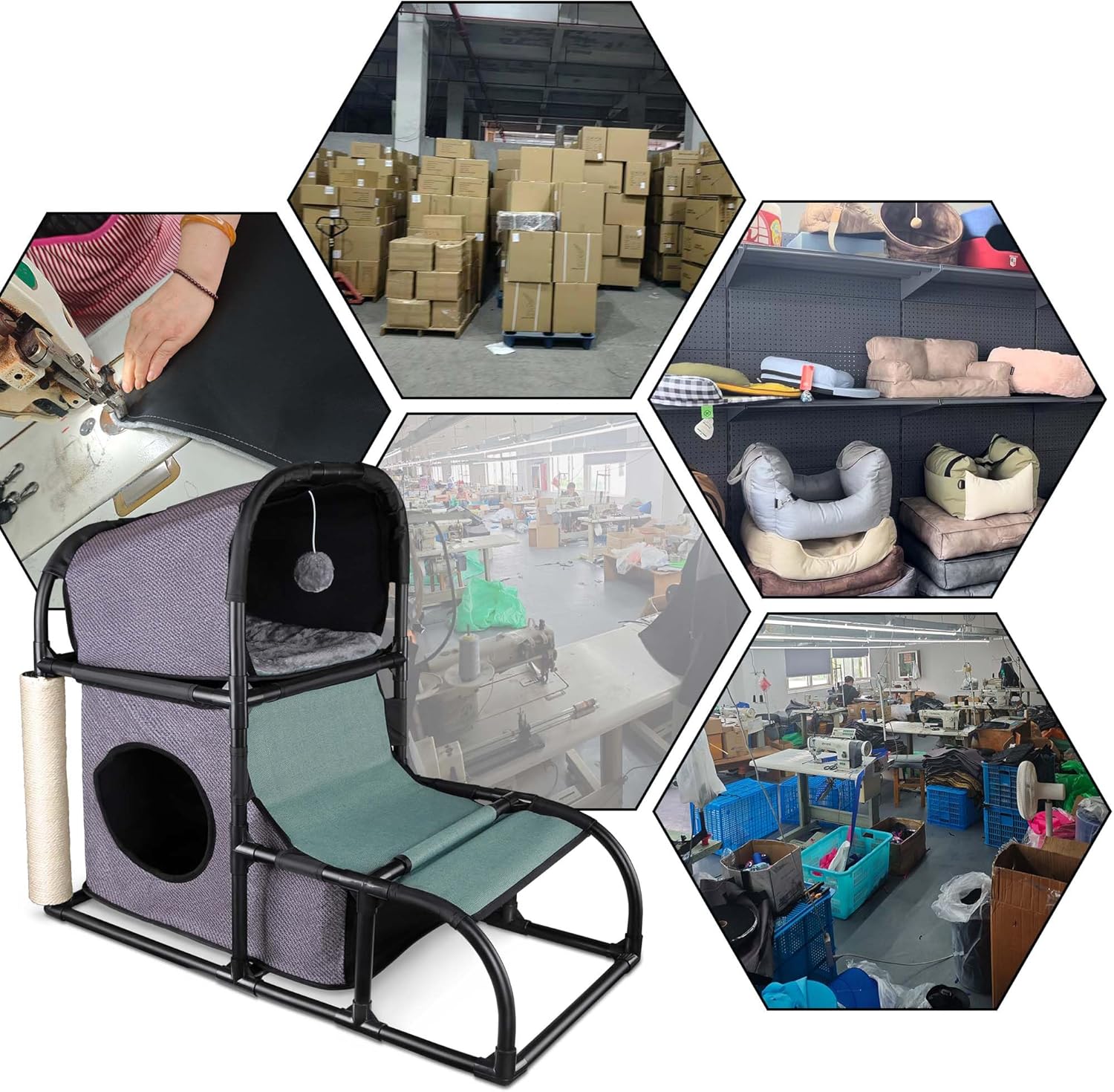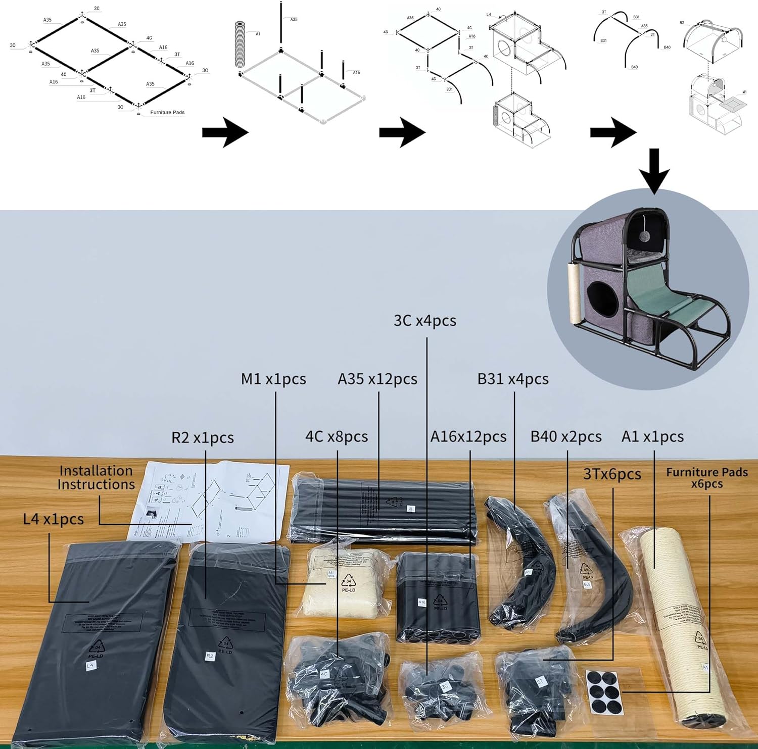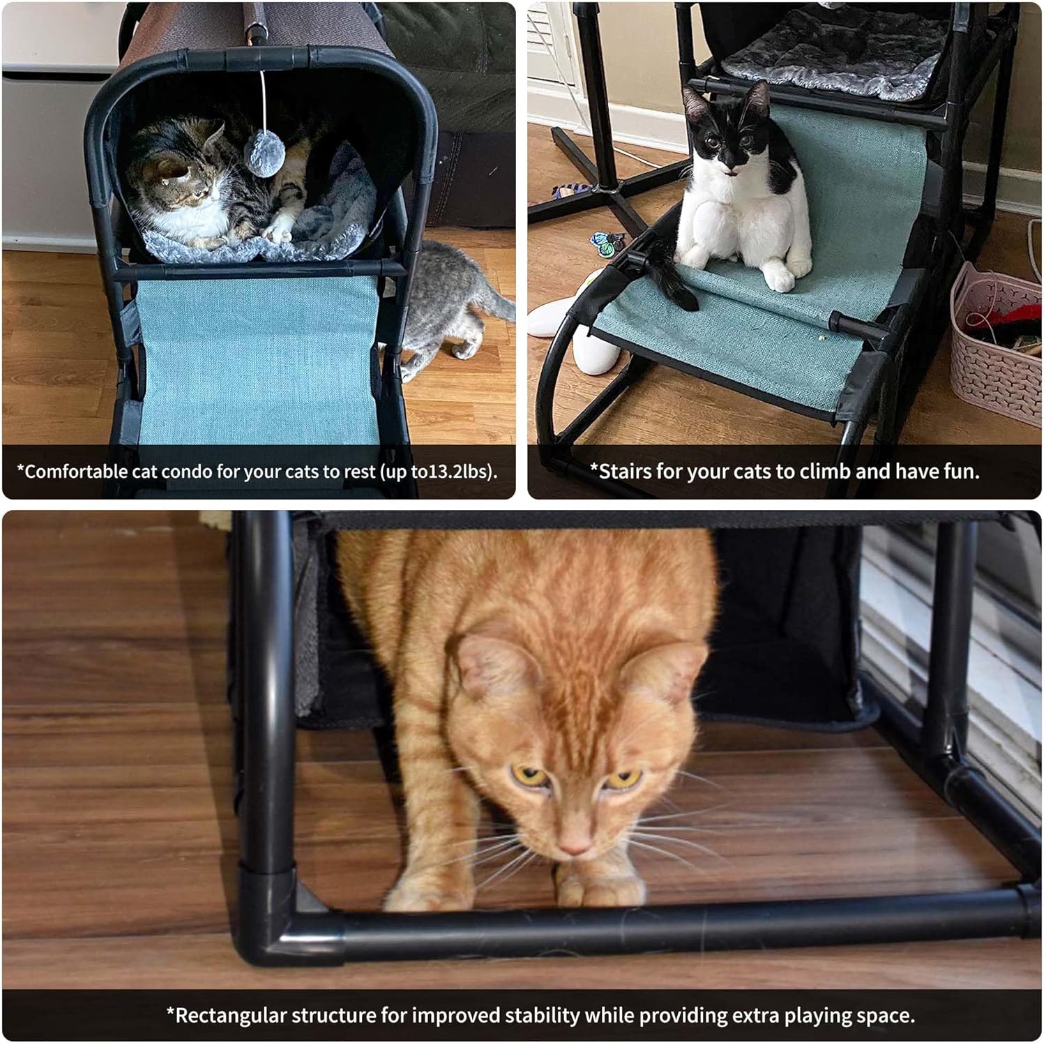 5 active areas: sleeping area, cat house, climbing ladder, scratching post, lay-on platform. Soft plush cushion to keep your cat warm and comfortable. Climbing ladder allow your cat to fully release energy and entertain itself