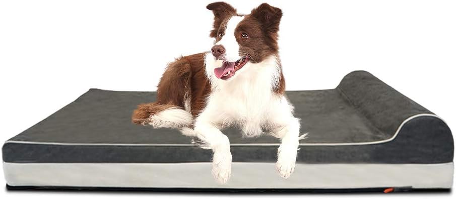 Laifug Orthopedic Memory Foam Extra Large Dog Bed with Pillow and Durable Water Proof Liner & Removable Washable Cover & Smart Design (Large (46 inch x28 inch x8 inch ), Grey)