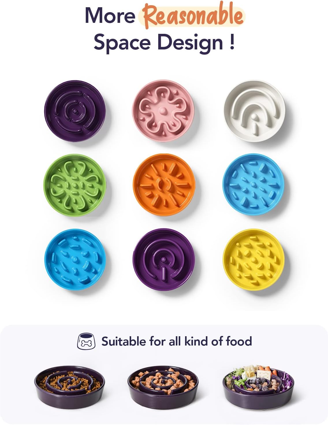Slow Down Eating, Bring Dog A Healthy Diet – Fast-eating dogs experience bloat, regurgitation, and obesity easily. Our slow feeder dog bowl design with the ridges and maze pattern helps your dog to eat slower than 40 times. Your dog could change his overeating behavior through a challenge and fun mealtime.