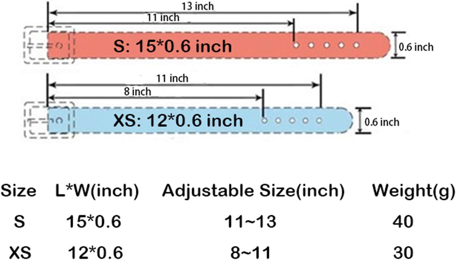 1.Size: XS:12 x 0.6 inch (Adjustment range 8~11 inch);
