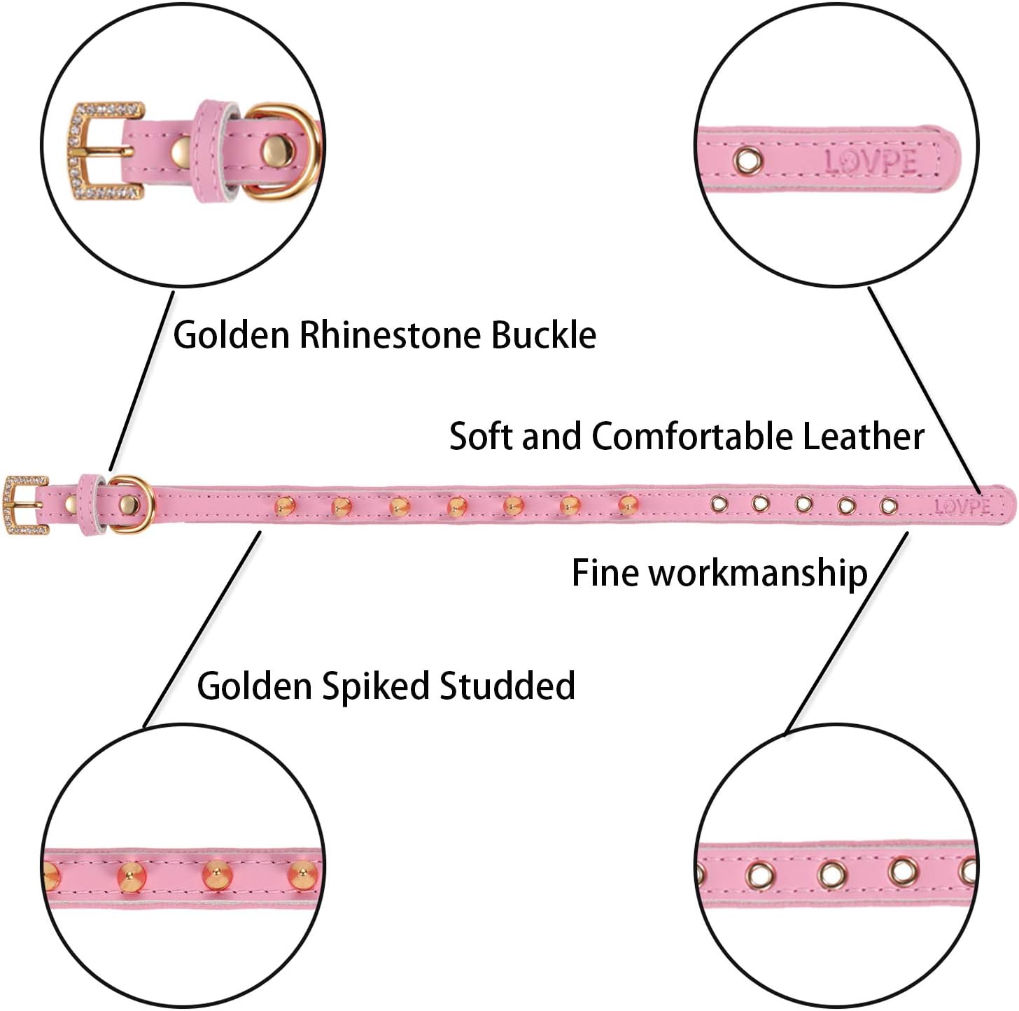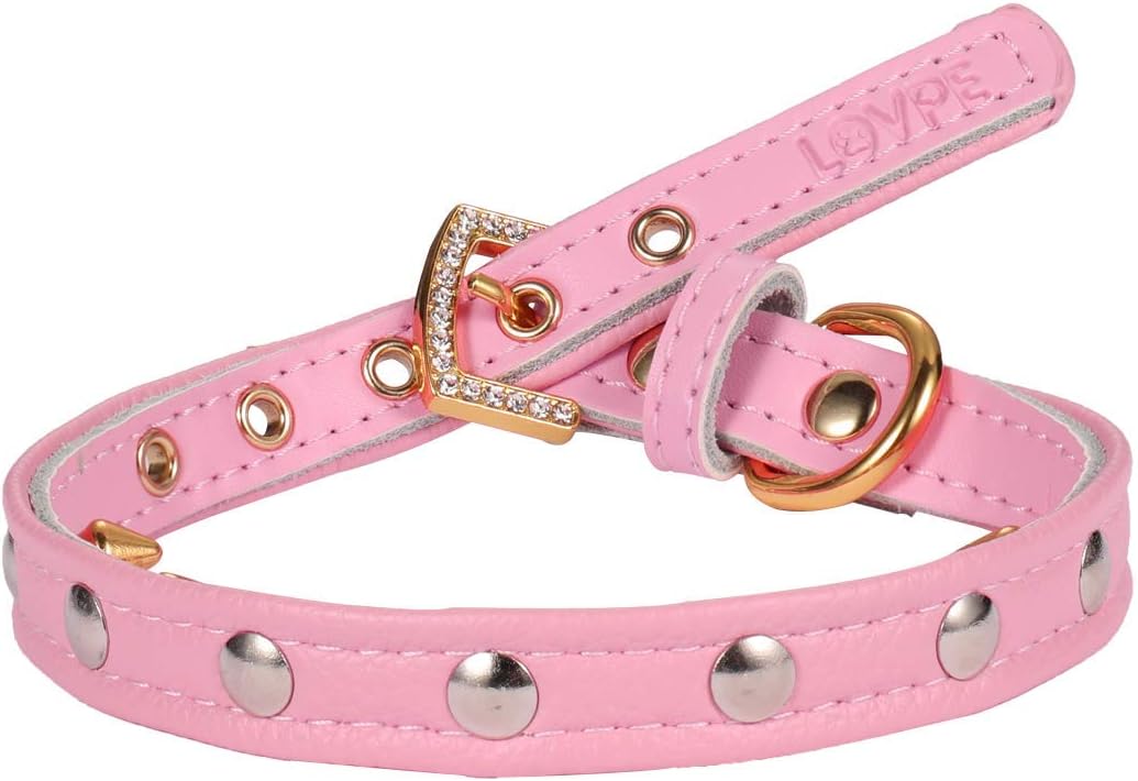 Be the first to review “LOVPE Cat Collar/Dog Collar Golden Spiked Studded Double Layer Leather Pet Collars with Golden Rhinestone Buckle for Cats Puppy Small Medium Dogs (XS(Neck for:8-11 Inch), Pink)”