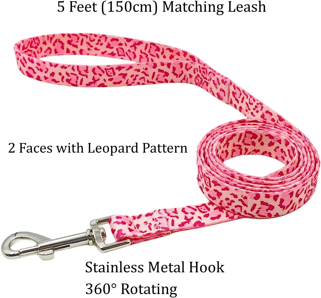 🐕2.【Pretty Pattern Design】Very nice LEOPARD Pattern printing on double sides, with Chrome coated Black metal D rings and Hook,looks powerful and high-grade.Recommended to both male and female. dogs.