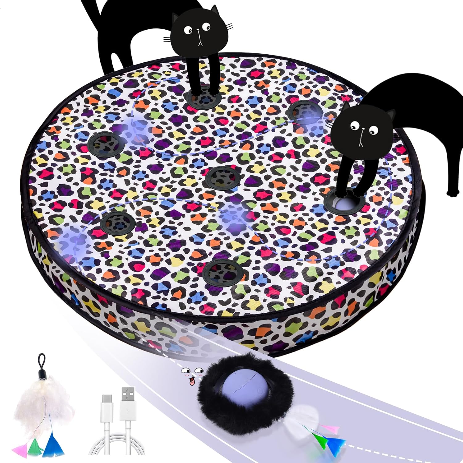 ORSDA Cat Toys Ball, Automatic Fast Rolling Ball in Pouch, Hide and Seek Cat Toy for Indoor Cats, Motion Chirping Activated Moving Ball, 7 Holes Mat Mouse Catching Game