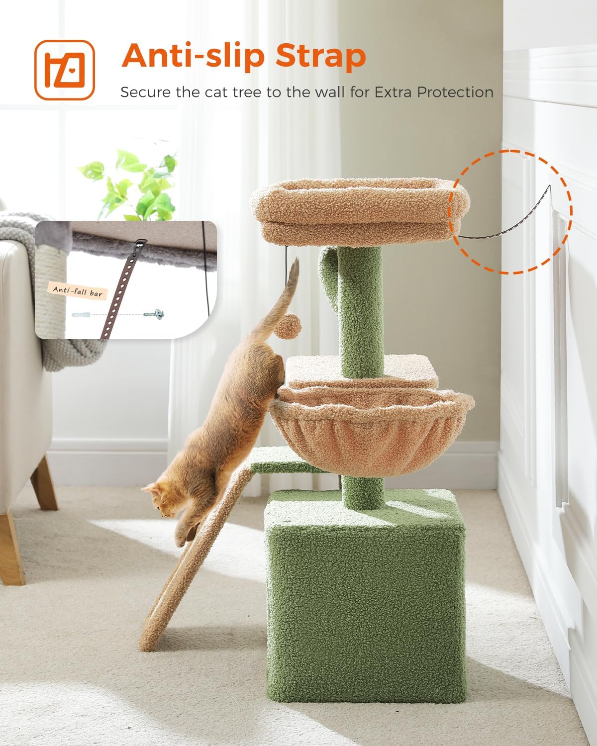 Sisal Scratching Ramp: Cat tree with scratching post for small cats features a sisal scratching ramp, perfect for satisfying cat’s scratching instincts and helping to keep their claws healthy and sharp, while also add 30% stability to the cat tower tree structure.
