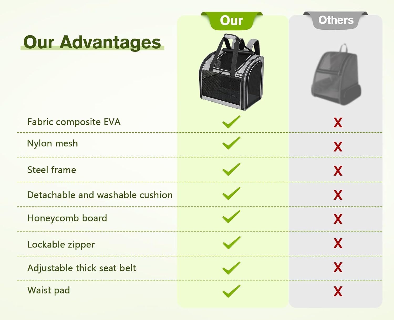 【 Breathable & Durable 】: Our dog backpack has an all-around breathable design, which not only allows your pet to enjoy fresh air, but also allows your pet to see outside through the mesh, maximizing your pet’s comfort. The mesh fabric we use is made of nylon material, which is more durable than rubber mesh and not easily scratched by pets.