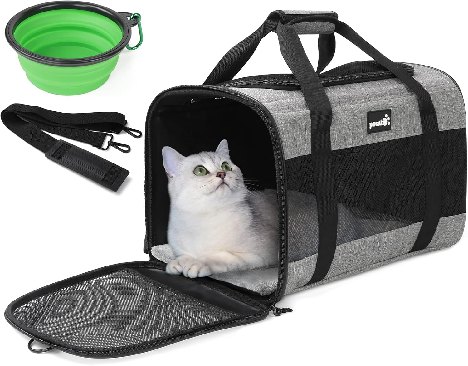 Pecute Cat Carrier Dog Carrier up to 15lbs,Pet Carrier for Cats and Puppies with Foldable Bowl, Soft-Sided Bag with Breathable Mesh, Suitable for Long and Short Trips Travel Camping Outdoor
