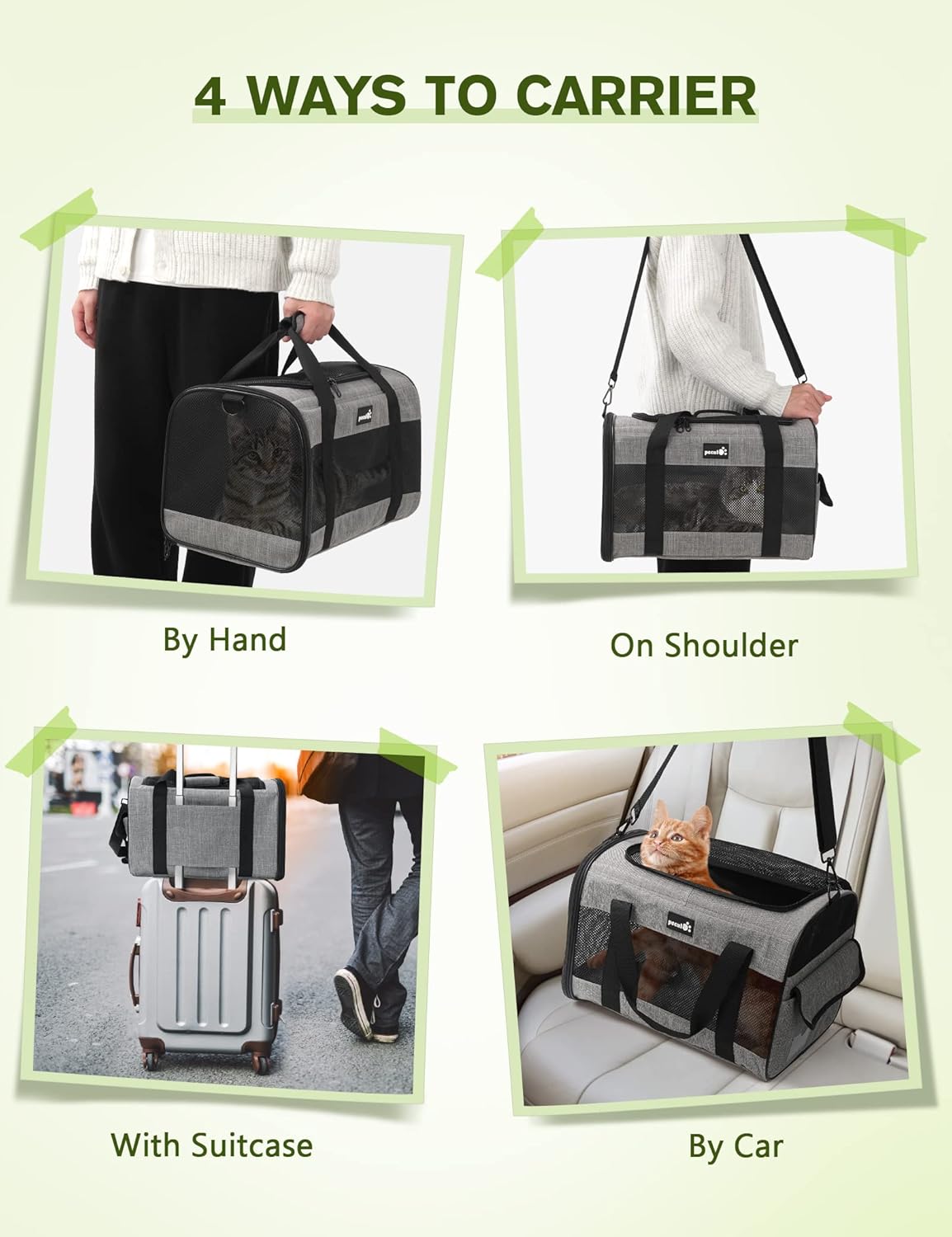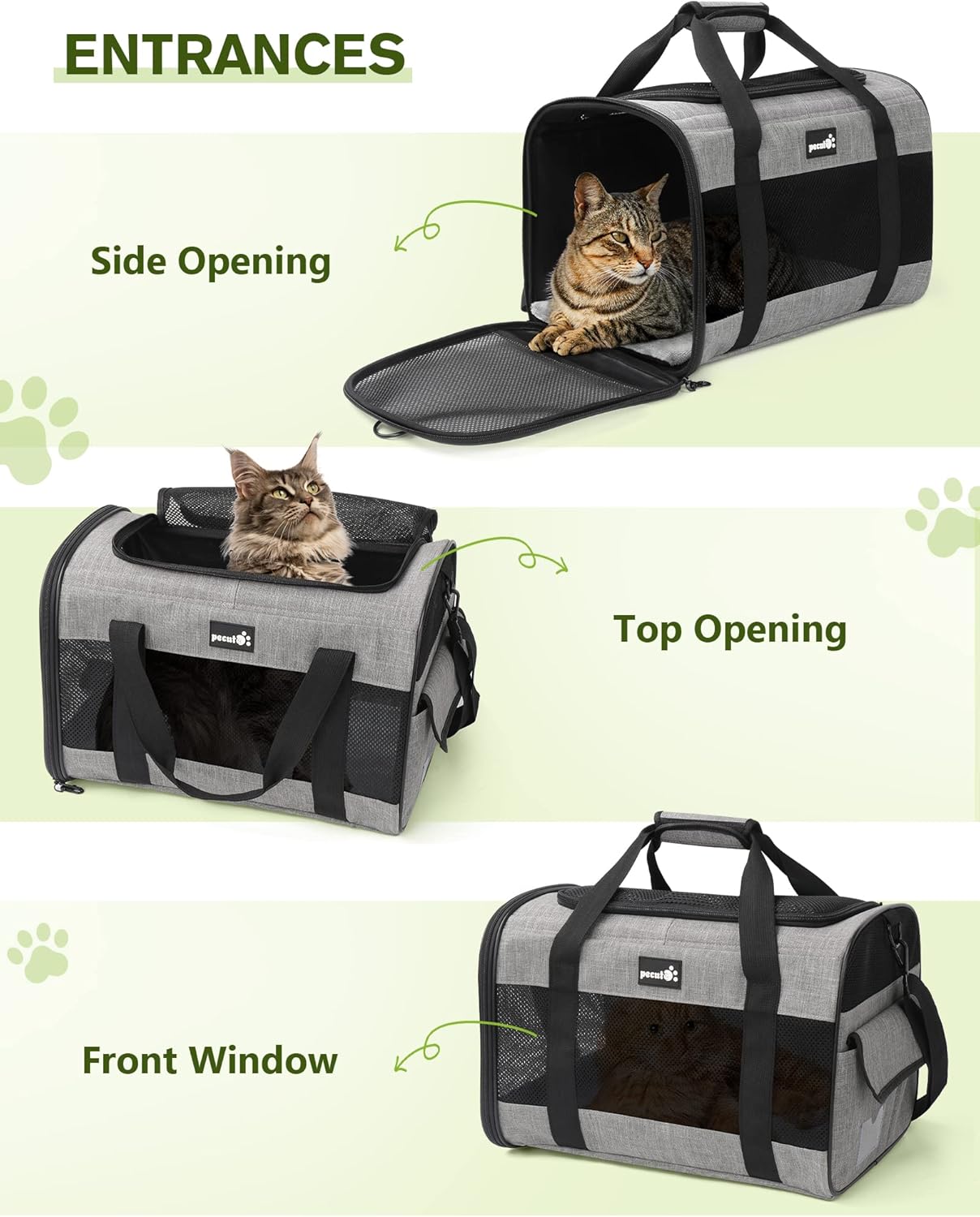 【 PROTABLE & FOLDABLE 】: Pecute cat carrier features a convenient and foldable design that makes it easy for you to take your pets on the go and store it away when not in use. With two ways to use it and an adjustable shoulder strap, it’s perfect for taking your furry friends to the vet or on your next travel adventure.