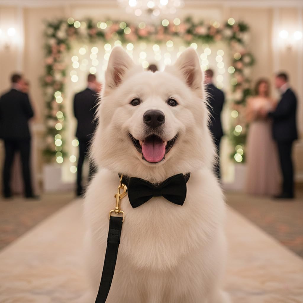 The matching dog bow tie features two hook and loop closures straps at back, which allows you easily make it attached to and removed from dog collar.