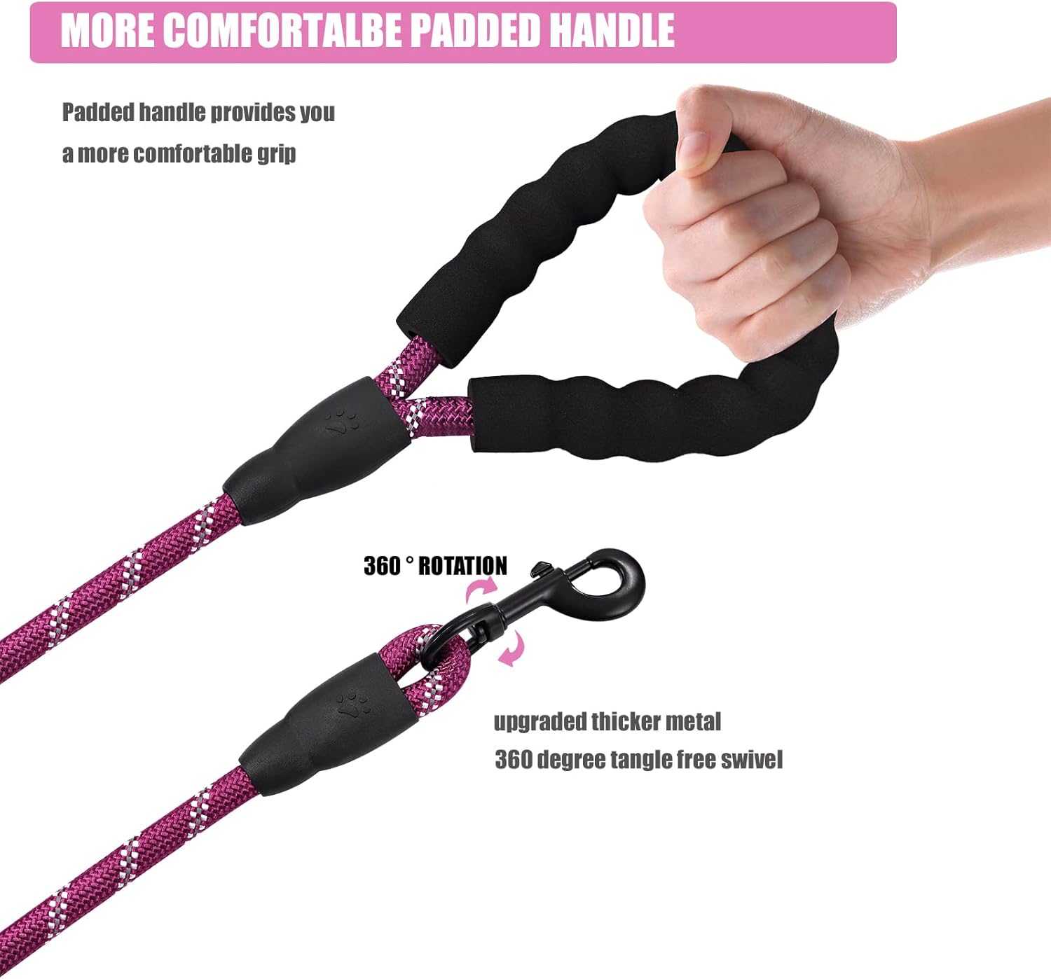 COMFORT PADDED HANDLES :With dog Leashes nice padded handle.Let wrist is comfortable,great for taking your fiesty dog for walks.