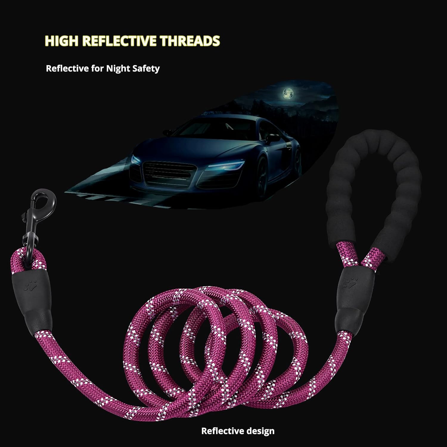 REFLECTIVE FOR NIGHT SAFETY : Highly reflective threads dog leashes keeps you both safe and visible on your late-evening walks.