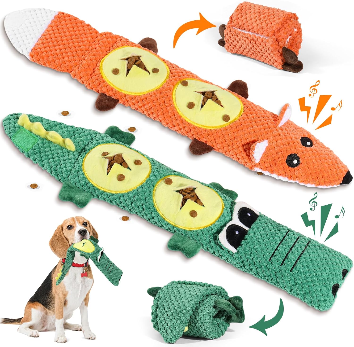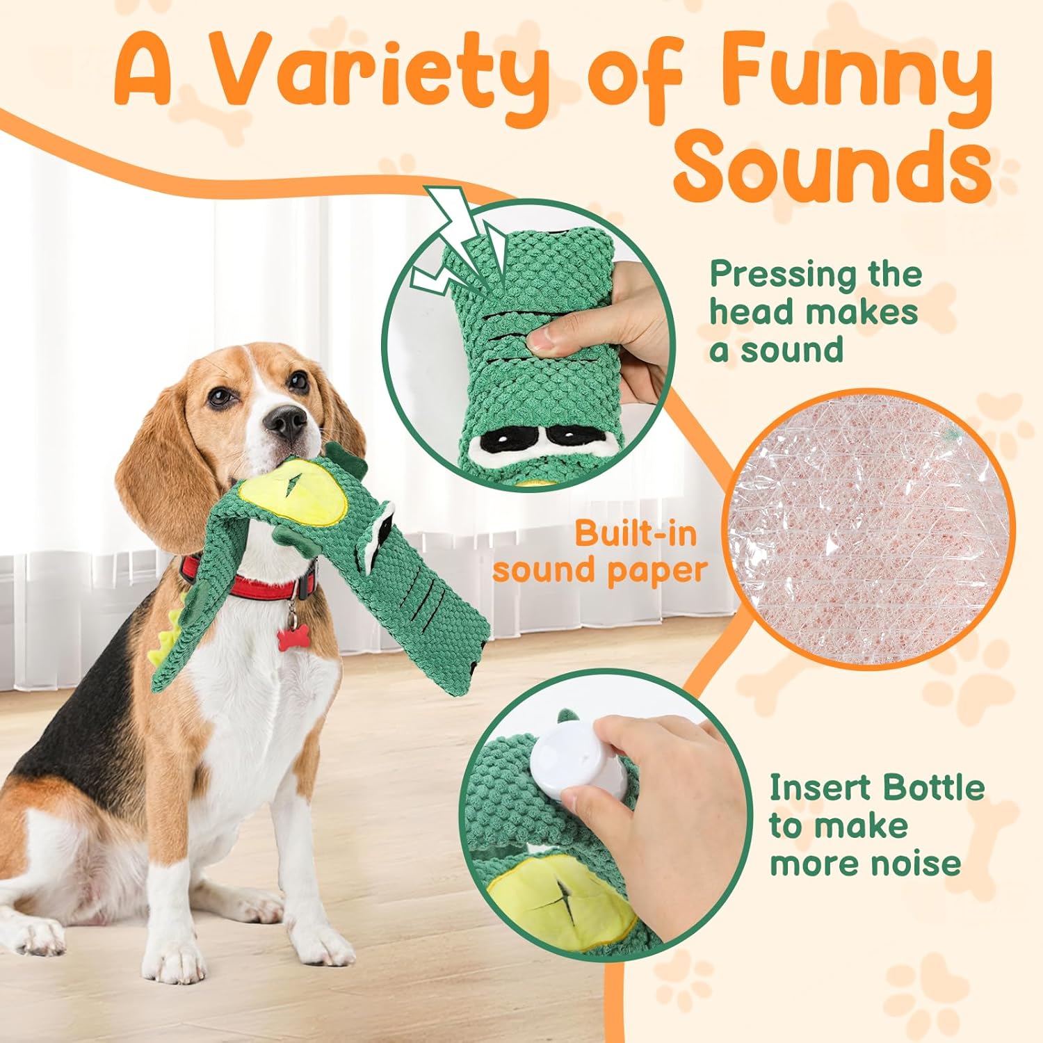 🔊 MULTI-SOUND ENGAGEMENT SYSTEM Dual squeakers + loud crinkle paper attract play interest! Built-in squeakers excite play instincts + textured surfaces clean teeth. Keeps dogs busy for hours, reducing anxiety & destructive behavior.