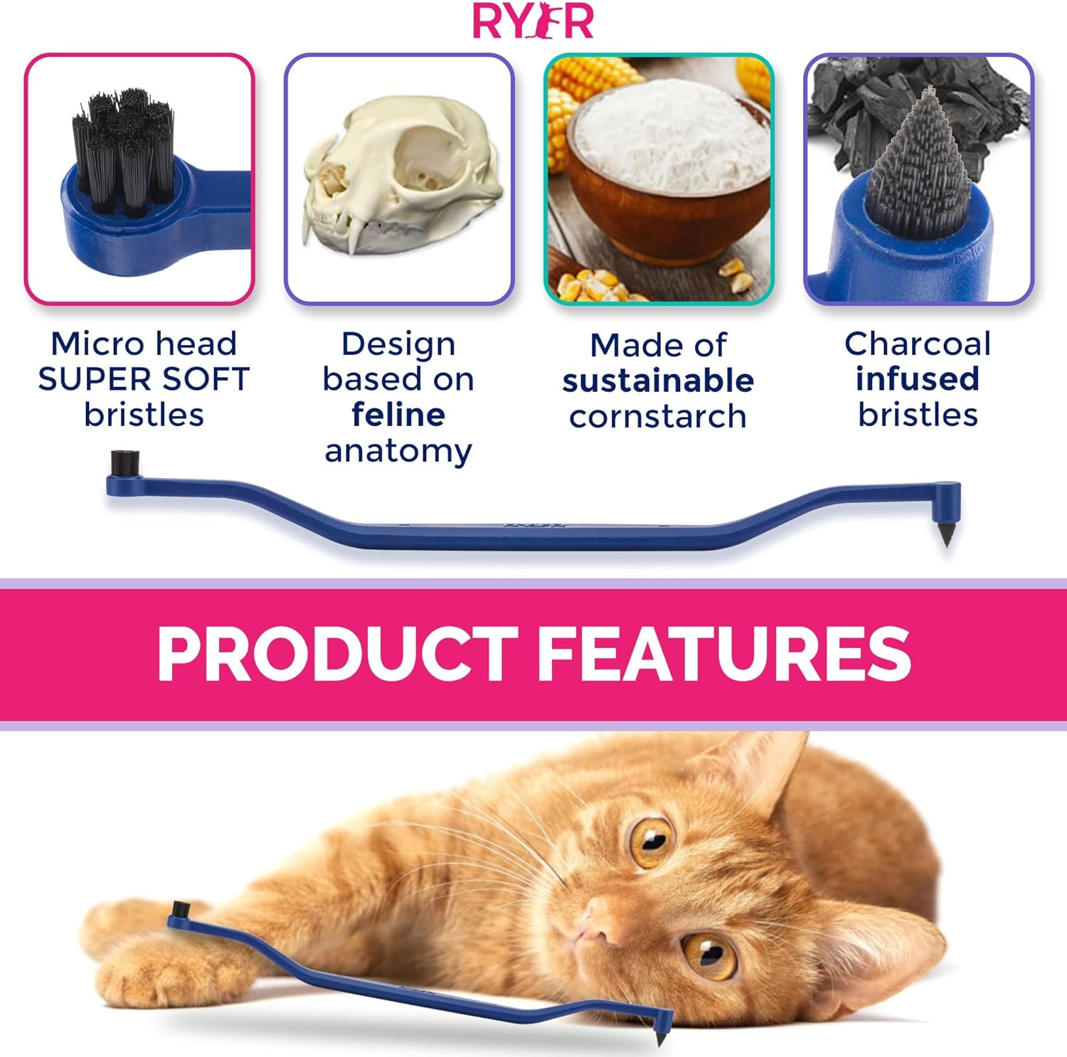 【Uniqueness】 Social & Environmental Impact: We care for your cat and the planet! Our toothbrush is sourced ethically, and its eco-friendly design crafted from biodegradable cornstarch gives it a unique “matte” feel. Be a responsible pet parent and support sustainability while caring for your fur baby!