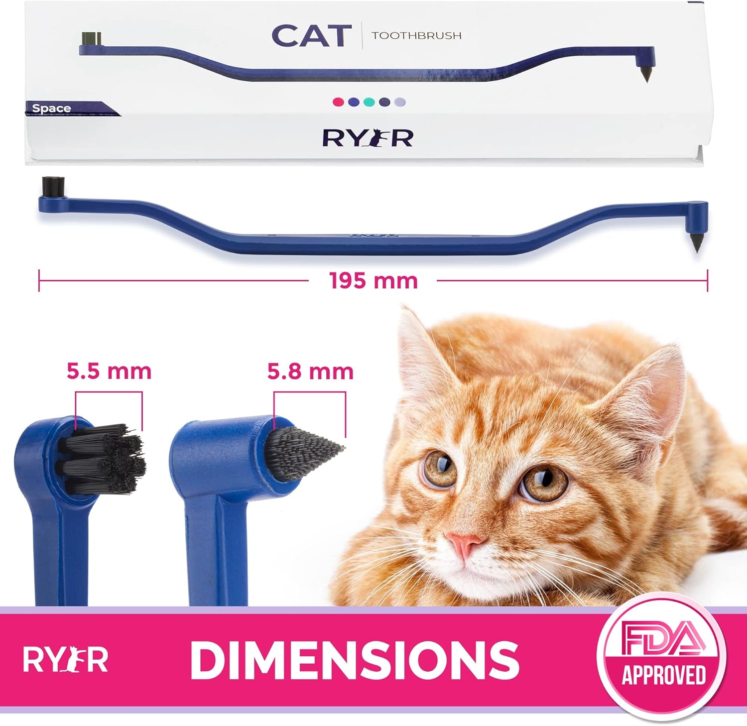 RYERCAT Dual Sided Cat Toothbrush – Kitten Toothbrush with Micro Head to fit into Cat/Kittens Mouth – Cat Dental Care Supplies – Pet Toothbrush for Cats(Space Blue)