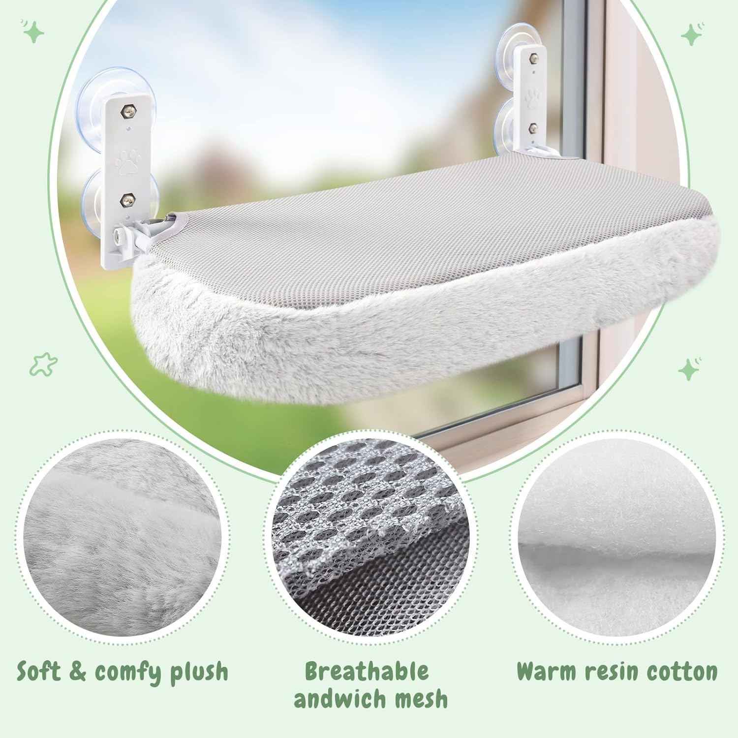 【Simple Installation】Our cat window bed comes with all the tools needed and detailed instructions. Your cat can use its new bed in ten minutes! Tips: Before attaching to the window, please clean the glass. Be sure to press hard on the suction cups to squeeze out the air completely.