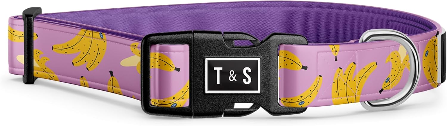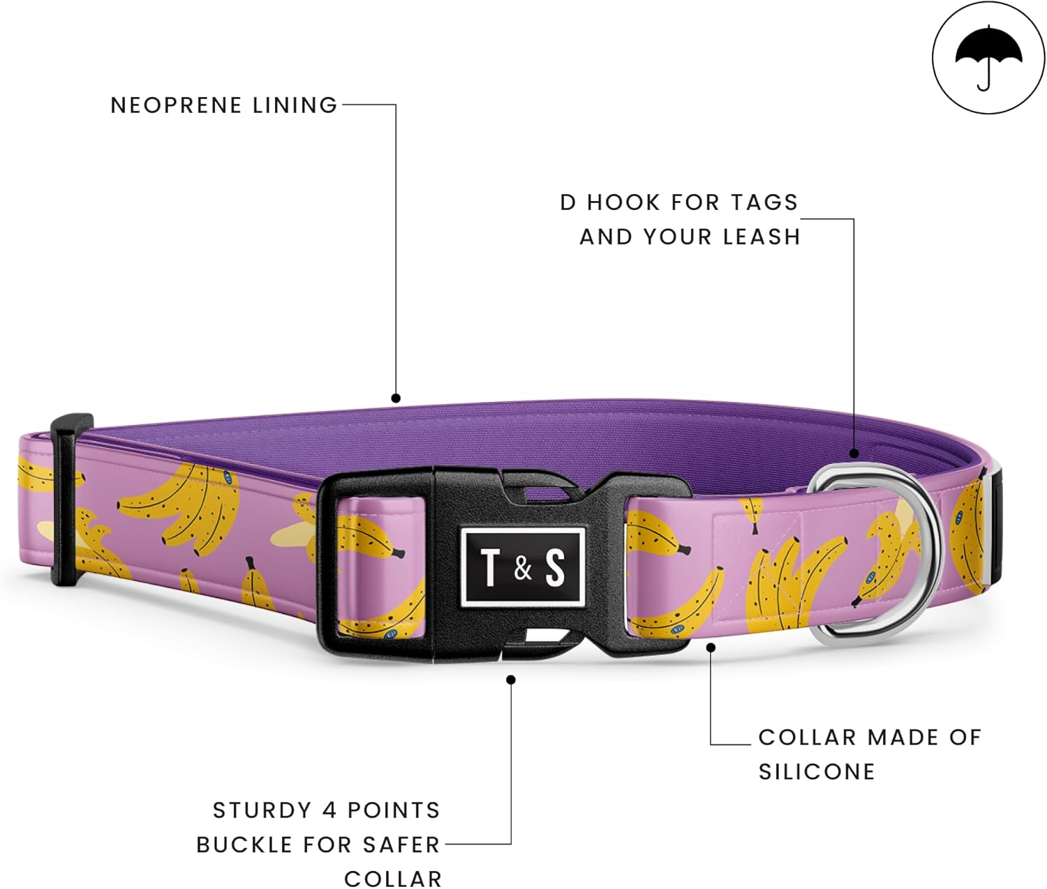 Tella & Stella Adjustable Waterproof Silicone Dog Collar – 9 in to 12.5 in for Small Dogs – Neoprene Lined for Comfort – Easy to Clean and Gentle on Fur – Chrome D-Ring Leash Hook (Banana, Small)