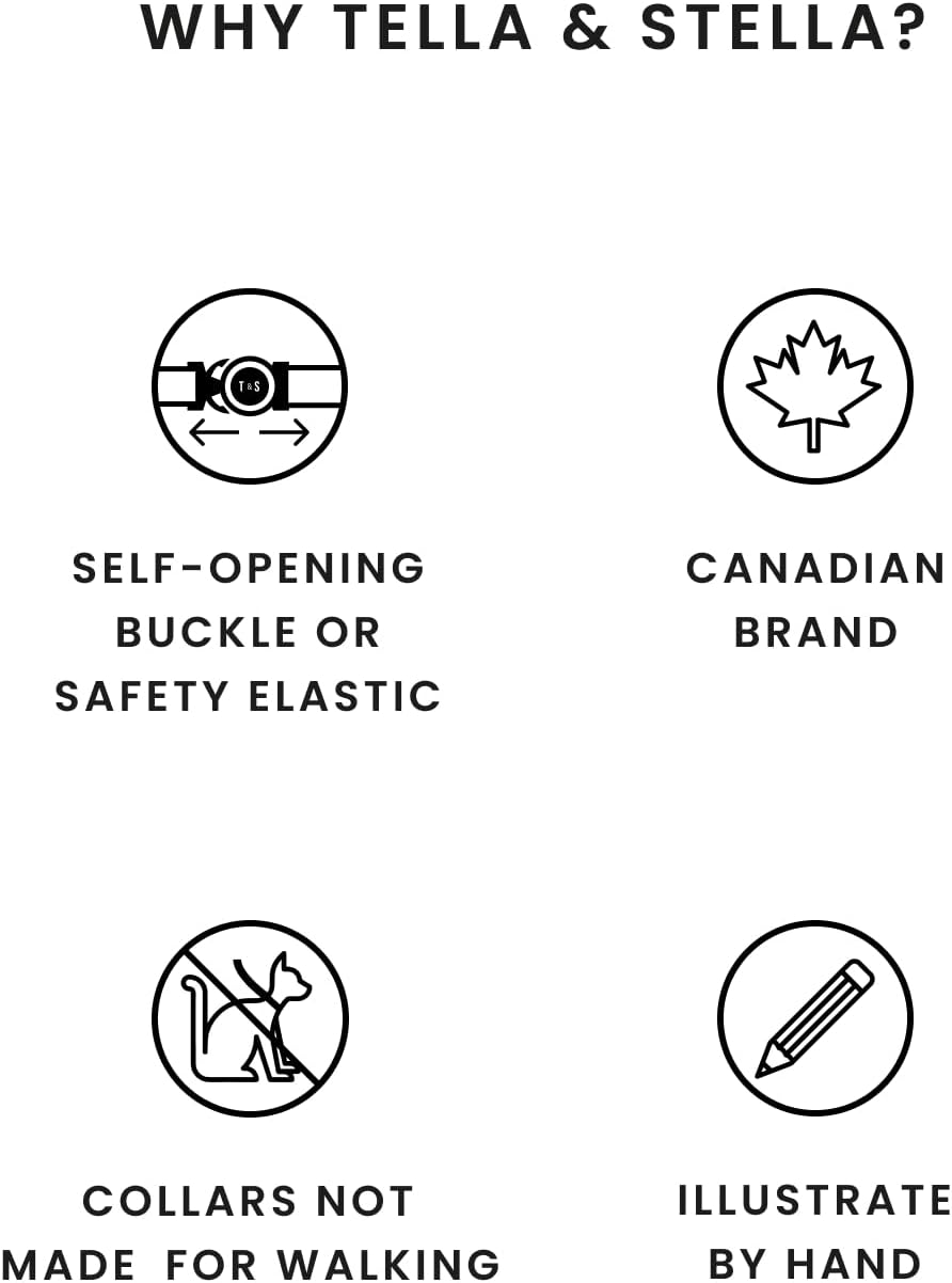 UNIQUE DESIGN: Just because this is a cat collar does not mean it has to be blend, choose from our unique designs Tella & Stella offers. Match your cat’s personality with a unique collar made from a Canadian Artist