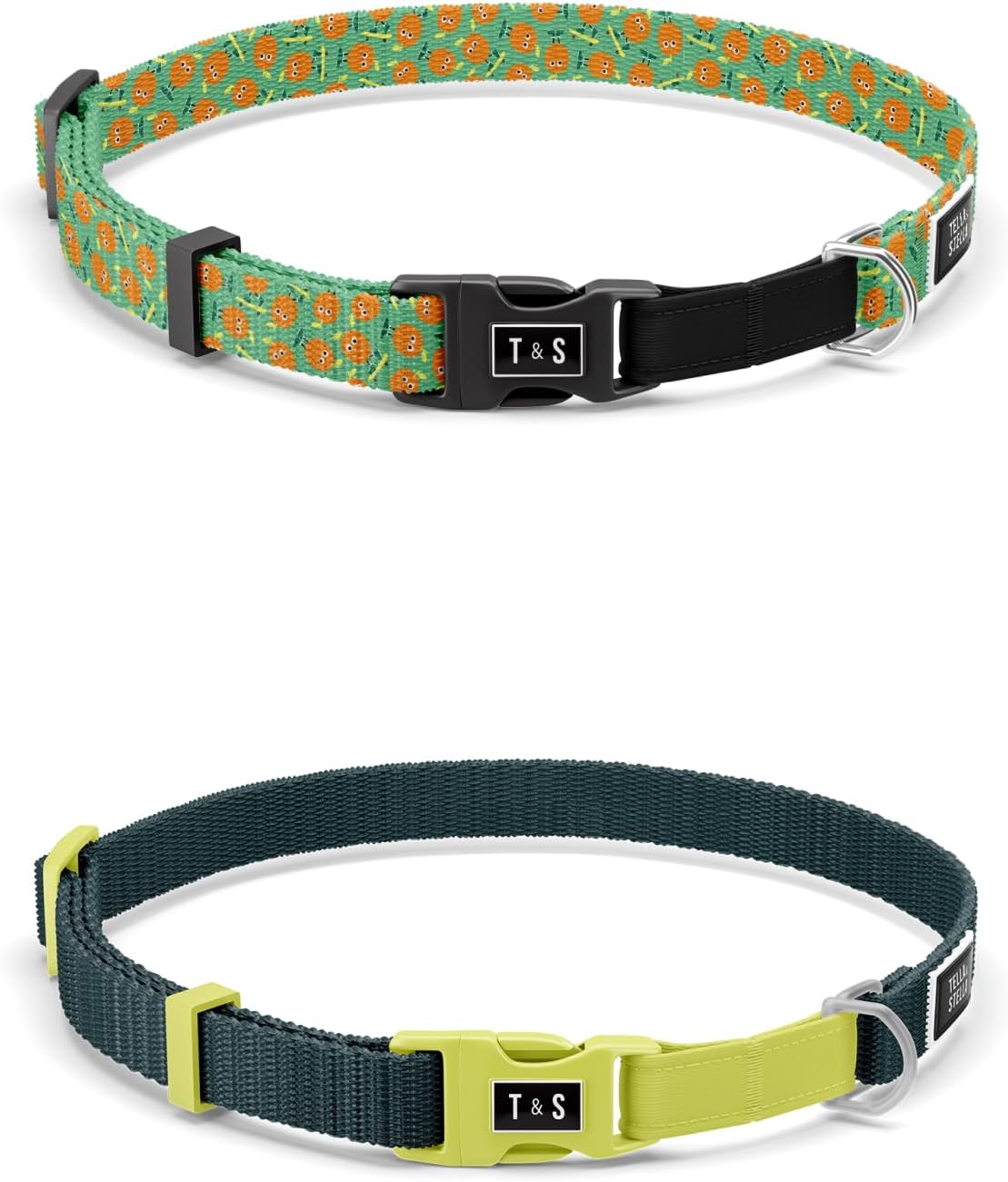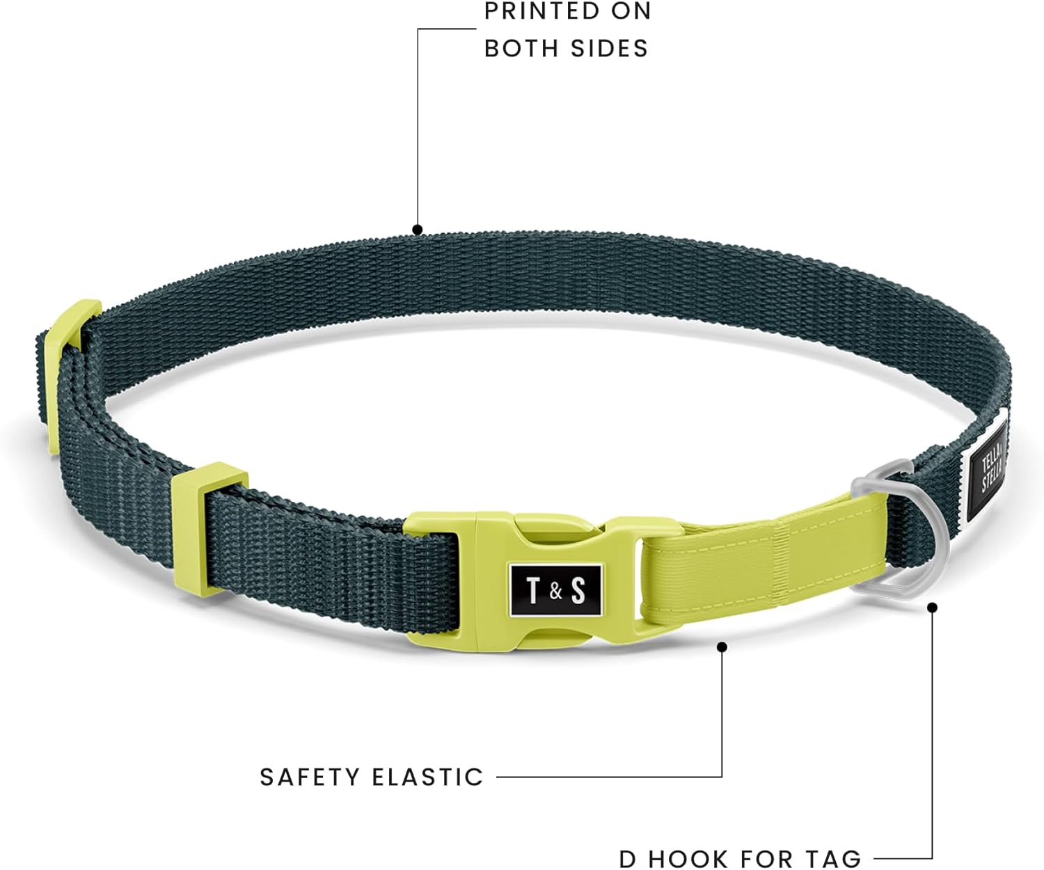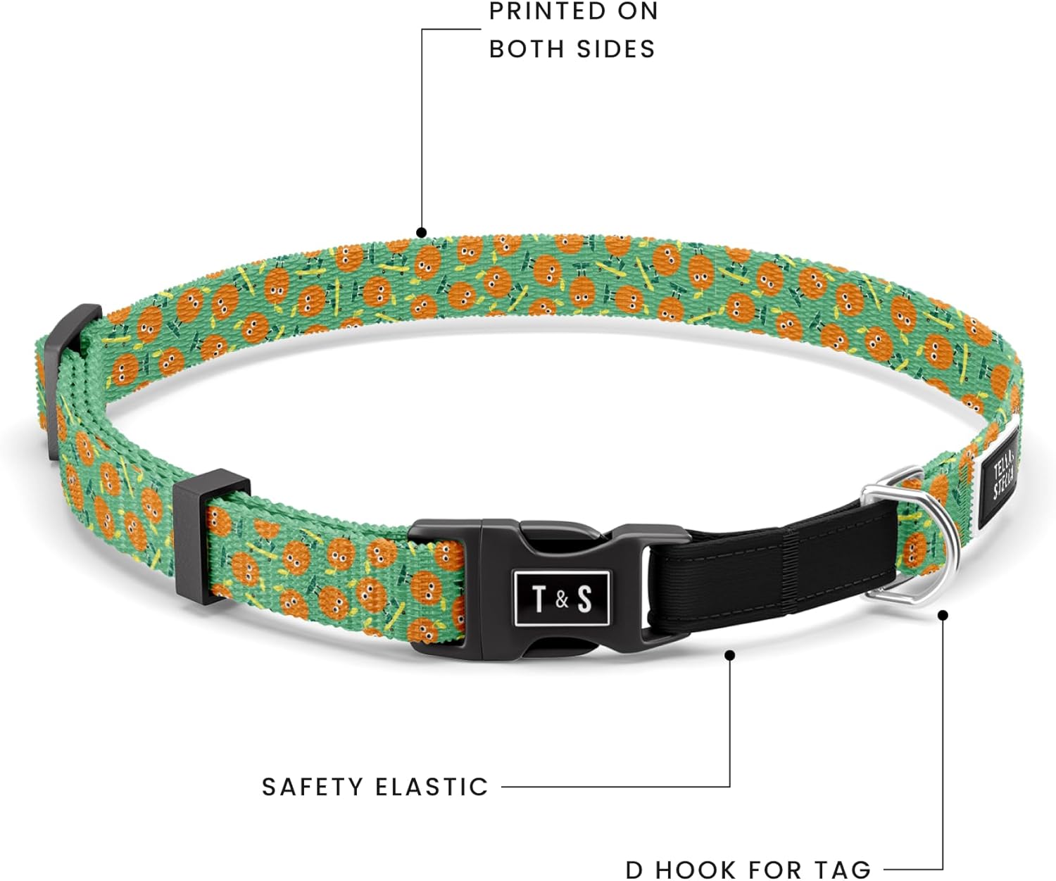 Tella & Stella – Cat Collar with Safety Buckle and Elastic for Your Cat’s Protection – Adjustable from 7″ to 12″ Long – Soft on Cat’s Fur – D-Ring for Tag (Ollie Orange – Forest Green)